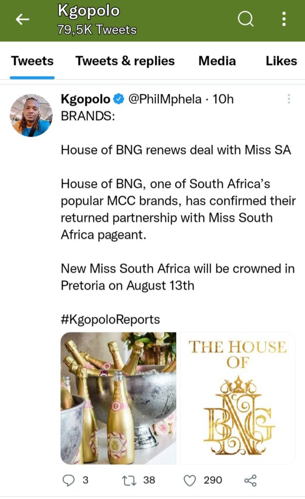 The details were shared by entertainment and television host Kgopolo Phil Mphela on his Twitter account.
