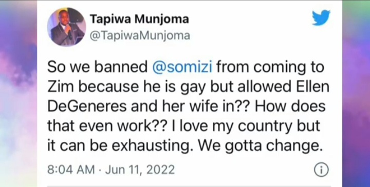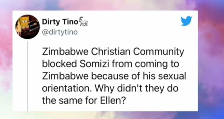 Zimbabweans have been reacting to how Ellen and her partner Portia were welcomed into the country after reportedly banning South African media personality Somizi Mhlongo.