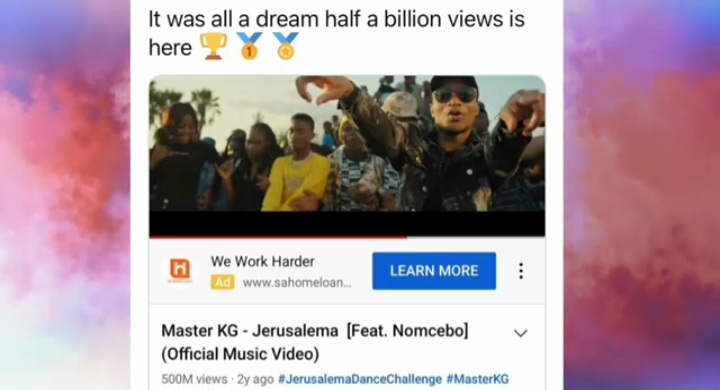 The viral video came just two days after Master KG announced that the song had hit another milestone with over half a billion views on YouTube.