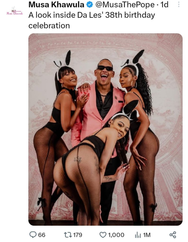 Entertainment and celebrity blogger Musa Khawula shared the pictures on his Twitter page.