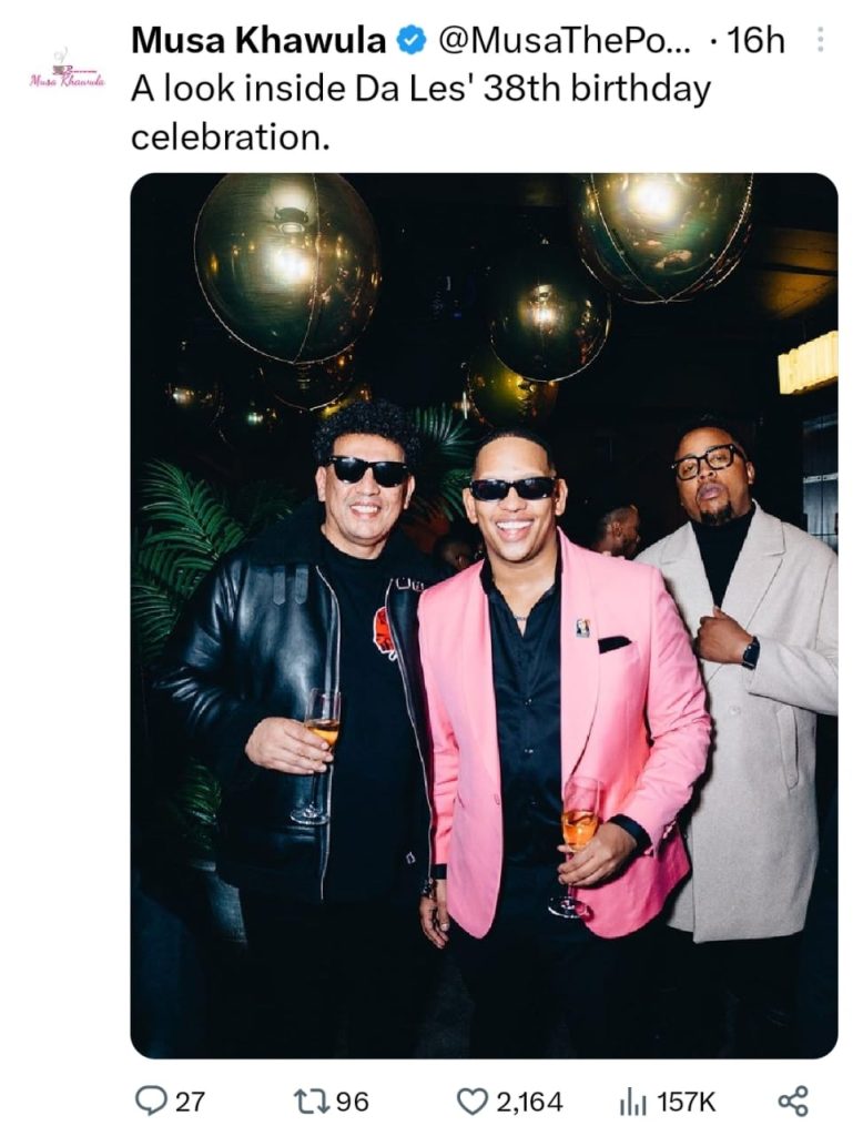 Rapper Leslie Jonathan Mampe who is better known by his stage name Da L.E.S celebrated his 38th birthday this past week.
