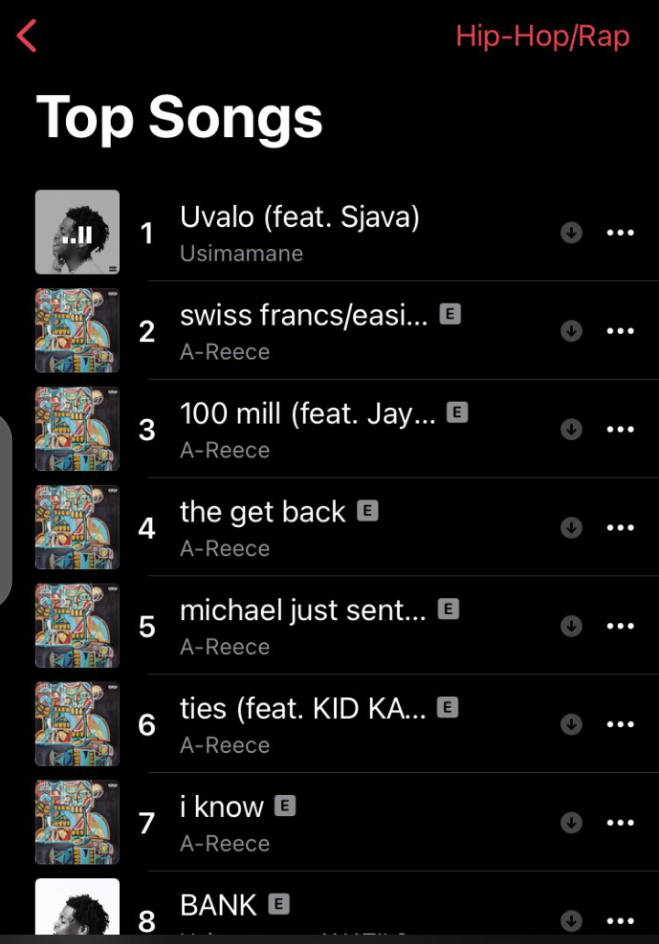 His music is now on number one hip hop on apple music and also for the first time on Spotify putting A- Reece and “Amalanga” by Mas Musiq, Lawd Weezy and Dj Maphorisa .