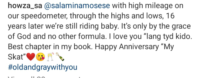 Howza shared on his Instagram that through the highs and lows of life they’re still together.
