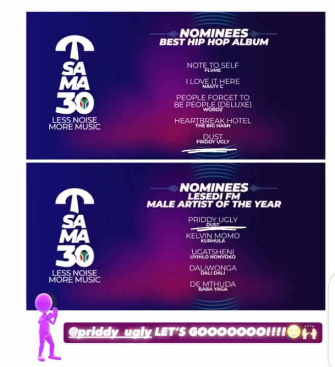 Music Artist Priddy Ugly was nominated twice for best hip hop album and male artist of the year.