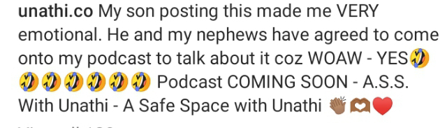 She revealed in her Instagram post that A safe space with Unathi was coming soon.