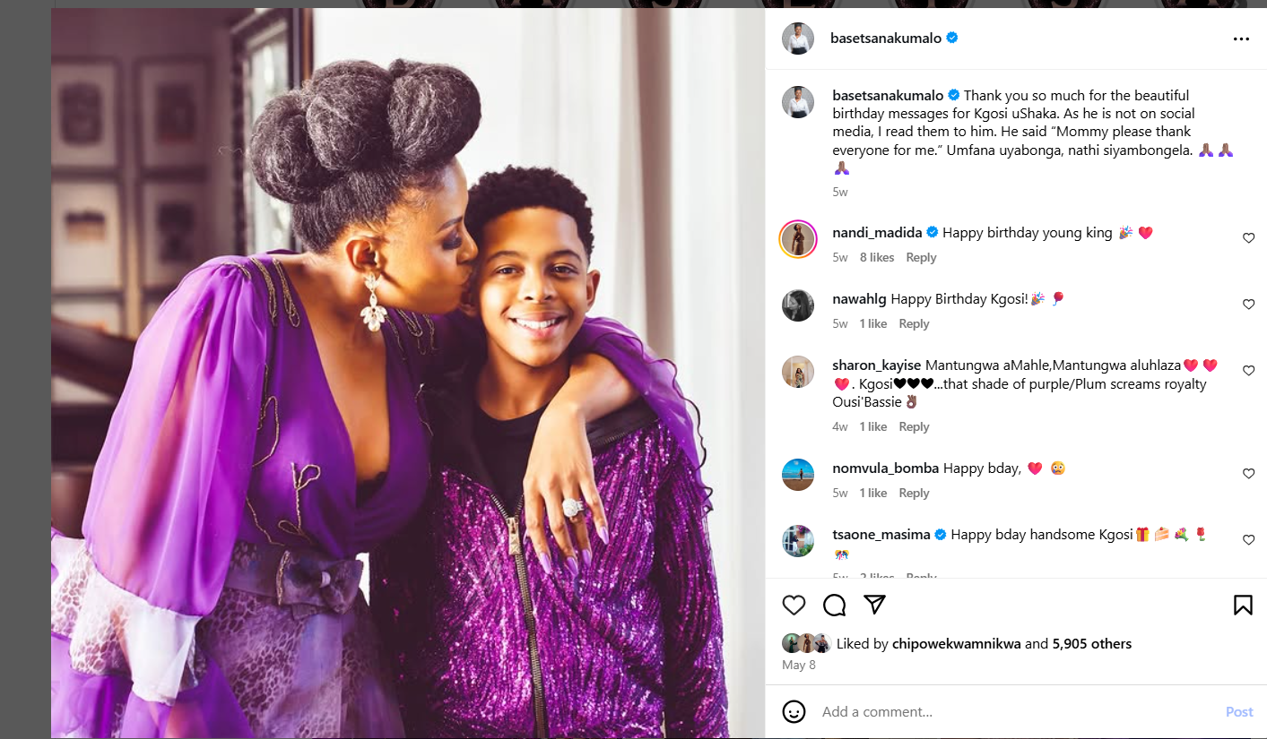 Thank you so much for the beautiful birthday messages for Kgosi uShaka. As he is not on social media, I read them to him. He said “Mommy please thank everyone for me.” Umfana uyabonga, nathi siyambongela.
