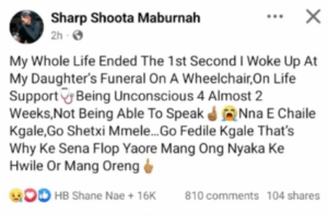 The accident occurred as Shebeshxt was driving to perform at a music show, accompanied by his daughter and his girlfriend. While Shebeshxt survived the crash, he sustained serious injuries, including the loss of a foot, and was initially treated at Polokwane Provincial Hospital before being transferred to a private facility with the help of Julius Malema, leader of the Economic Freedom Fighters (EFF).