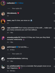 Comments ranged from celebratory, “Happiness looks good on you,” to somber reflections, “R.I.P AKA.” Many fans, however, defended Nadia’s right to find peace and happiness on her own terms, highlighting that grief and healing manifest differently for everyone.