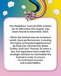 As a senior entertainment blogger with a pulse on South Africa’s vibrant festival scene, the recent announcement that the Hey Neighbour Festival 2025 has been postponed from August to December is a significant development that deserves a closer look.