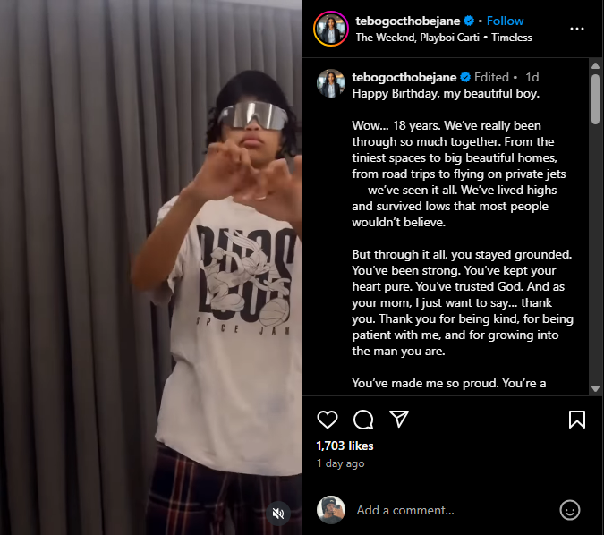This milestone is not only a personal victory for Tebogo but also a reminder of the powerful role of motherhood in shaping identity and purpose. As Botlhale embarks on adulthood, Tebogo’s heartfelt tribute stands as a testament to the enduring strength of their relationship and the bright future that lies ahead for both mother and son.